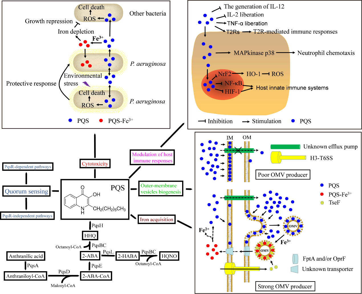 铜绿假单胞菌是一种人类重要条件致病菌,是引起菌血症和泌尿系统、呼吸系统感染的主要病原细菌之一,它引起的烧伤感染病例和肺部感染病例在所有病原细菌中更是高居前两位。为了突破宿主的防御系统并成功感染,铜绿假单胞菌进化出多种与其致病性直接相关的毒力因子。这些毒力因子相关基因的表达受群体感应系统(Quorum Sensing,QS)的调控,其中以2-庚基-3-羟基-4(1H)-喹诺酮(又称Pseudomonas quinolone signal,PQS)为信号分子的QS系统调控着绿脓菌素、凝集素、弹性蛋白酶、鼠李糖脂、氰化氢和几丁质酶等多种毒力因子的表达。然而,最近的研究显示除了作为群体感应的信号分子,PQS 还具有多种其他功能。本综述从群体感应、铁离子摄取、细胞毒性、外膜囊泡生源,以及调节宿主免疫力等五方面对PQS的功能进行了阐述,强调了PQS多种功能之间的协同作用可能在铜绿假单胞菌适应环境方面起重要作用,并暗示PQS可能还存在其它未知的功能,而其非信号分子功能将是未来需要重点关注的研究领域。