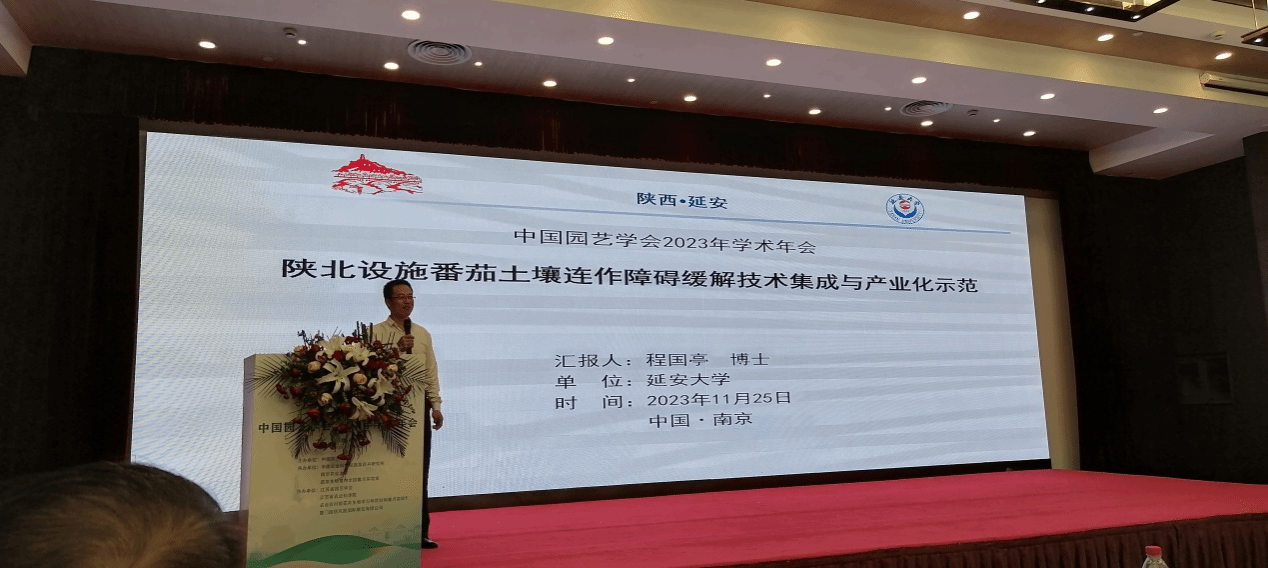 中国工程院院士、湖南农业大学校长邹学校院士做了大会主旨报告,华中农业大学徐强教授等11位园艺领域青年专家做了大会特邀报告。果树、蔬菜、西甜瓜、观赏园艺4个专业组共100余位专家代表进行了分组交流讨论。beat365中国官方网站程国亭博士在蔬菜组做了题为“陕北设施番茄土壤连作障碍缓解技术集成与产业化示范”的报告,与参会代表就陕北设施蔬菜产业化发展及全产业链建设进行了深入交流,增进了国内同行对陕北设施蔬菜的了解、支持和帮助。