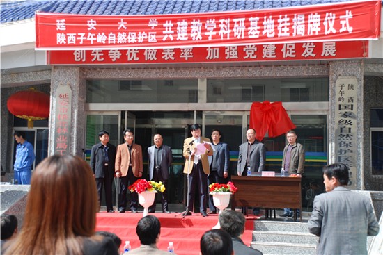 | 4月9日上午,我校与陕西子午岭国家级自然保护区管理局“生命科学教学科研基地”挂揭牌仪式在富县桥北林业局举行,我校beat365中国官方网站副院长孙志宏、王文强,陕西子午岭国家级自然保护区管理局局长贾生平和管理局全体工作人员,以及我校beat365中国官方网站部分教师代表参加了挂揭牌仪式。仪式由陕西子午岭国家级自然保护区管理局副局长张孝民主持。 贾生平局长首先介绍了陕西子午岭国家级自然保护区的基本情况,并表达了对与我校进行合作的期待。他表示,这次挂揭牌仪式代表着陕西子午岭国家级自然保护区将与延安大学进行更加密切、长期和友好的合作。随后,孙志宏副院长在致辞中向与会来宾简要介绍了延安大学及beat365中国官方网站办学的基本情况,并从教学实习、产学研等方面,提出了对双方将来进行全面、深入合作的建议。王文强副院长宣读了教学科研基地建设协议书。在与会人员热烈的掌声中,孙志宏副院长代表学校向陕西子午岭国家级自然保护区授予了“科研教学实习基地”的牌匾,并与贾生平局长一起为基地揭了牌。 揭牌仪式结束后,在贾生平局长及保护区管理局的有关人员引导下,beat365中国官方网站全体人员一起进山考察了陕西子午岭国家级自然保护区。 陕西子午岭自然保护区于2006年2月11日经国务院批准晋升为国家级自然保护区,是以保护黄土高原稀有的天然次生林森林生态系统及野生动植物资源为主的“森林和野生动物类型的自然保护区”,是国务院在陕北黄土高原上批建的第一个国家级自然保护区。总面积40621公顷,森林覆盖率达88.3%以上。子午岭自然保护区可谓黄土高原上的天然物种“基因库”,保护着黄土高原生态脆弱地区最完整、最典型、最珍贵的天然次生林森林生态系统,其生物多样性相对丰度占到黄土高原地区生物种类的45%以上,有种子植物104科344属633种,保护区内有脊椎动物27目59科188种,特别是子午岭保护区植被属暖温带半湿润落叶阔叶林带的北部西段,是森林草原向草原植被的过渡地带,有独特的区位优势,是黄土高原天然的绿色“基因库”,被誉为黄土高原上的“绿色明珠”、陕西的“一叶肺”。