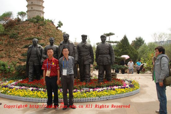 | 2011年4月28日,西安世界园艺博览会拉开序幕。这是继2008年北京奥运2010年上海世博会之后,在中国大陆举办的又一重大国际盛会。2011西安世园会园区规划面积418公顷,远远超出昆明世园会的218公顷和沈阳世园会的246公顷,将成为历届世园会中规模最大的一届。2011西安世园会会期178天,共设置室外展园109个,除了充满中国特色的国内展园外,新西兰园、德国奥尔登保园等国外展园充满异域风情。本届世园会共设立了40个内地展园,陕西展园有十个,分别由陕西省的9个市和杨凌区建设,其中延安园由延安市政府承建,延安市城市管理局园林管理处具体负责。延安园以“革命圣地、和谐延安”为主题,由“延安印象”“人杰地灵”“天地人和”三部分组成,表现延安“三山雄立、两水汇流”的自然山水格局。整个展园以“一山”“一塔”“一河”“一窑”将延安“两黄两圣”的风貌融于方寸之间。缩微版的“延安宝塔”“窑洞”以及伟人的铜塑像,让游人对红色陕北肃然起敬。当天世园会开幕之日在延安园内,陕北的标志性花山丹丹首次成功亮相,展现了其“红艳艳”的革命本色,给延安园增添了强烈的红色文化气息和浓重的园林艺术的色彩。 本次山丹丹的之所以能够成功亮相要追溯到2010年7月末,延安市民盟的3位盟员樊延虎、申延生、王延峰在西安参加盟务骨干培训班时提出倡议要让山丹丹成为“市花”并让人们四季能够领略其红艳艳的本色。后来,在延安市科技局、延安大学科技处、beat365中国官方网站的支持下,王延峰博士带领陕北环境资源生物技术研发团队对山丹丹在延安地区的分布、繁殖体系、生长机理、花期调控、气象资料等进行全方面研究,利用分子发育调控手段,结合无土栽培生产工艺实现了山丹丹花反季节开花。2010年末,王延峰博士与延安市园林处达成合作意向,决定为山丹丹花开世园会开幕之日提供技术支持。2月下旬定植,研发团队11人经过二个月的紧密协作攻克了一项项难题,本次花期调控的主要难点有2个,一是要对未曾驯化的野生花卉调控,二是要实现精确控制盛花期在4月28日左右,通过采用温度、光照、湿度、营养进行粗调,结合植物分子发育调节剂进行细调,最终达到了预期目标。2011年4月24日,千余株含苞待放的山丹丹由延安起运,于当日晚十点到达世园会后勤门,经过2小时严密地安检后,山丹丹被定植于延安园宝塔山坡和窑洞崖上以及五大伟人塑像前。4月25日,4月26日,4月27日三天对山丹丹进行了营养维护、整形、催花或延衰处理,4月28日世园会盛大开幕式之日,山丹丹终于在2011西安世界园艺博览会延安园中露出了其红艳艳的姿容。陕北的标志性花--山丹丹首次成功亮相世园会受到了媒体和游客的热情关注,陕西电视台、延安电视台、西安电视台、华商报、延安日报、西部网等媒体均有报道,许多论坛和转帖不断涌现。期间,王延峰博士与世园会授权方国际园艺生产者协会(AIPH)主席Doeke Faber,国际风景师联合会(IFLA)主席Desiree Martinez进行了友好交流,并接受了多家媒体的采访。2011年5月3日,在延安园的花木维护交给本届世园会赞助商园林公司之后,团队一行人顺利返回延安。 4月24日图片回顾
