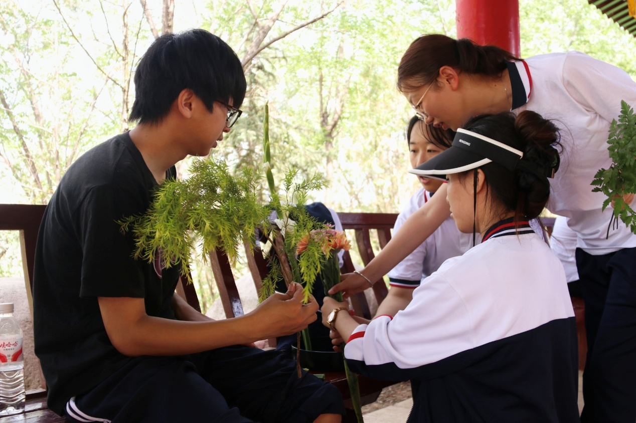 在劳育美育活动阶段,同学们在专业教师和植物园技术人员指导下开展了观赏草栽植、萌蘖枝条修剪、绿地杂草清除等工作,劳动过程中同学们分工协作、积极动手、秩序井然。美育活动中花艺教师屈亚潭首先向同学们介绍了中国传统插花中承载的中国传统文化元素,讲解了插花创作的基本知识,随后同学们分组开展了插花花艺作品,创作出15件融合生态美学与延安元素的花艺作品并进行了交流展示。高媛媛副书记对本次活动做了总结,并表示未来将通过长期的沉浸式的劳动实践和美育教育,培养学生对生命科学的热爱,使学生成为具备扎实专业基础、熟练动手能力和丰富人文素养的新时代青年学子。
