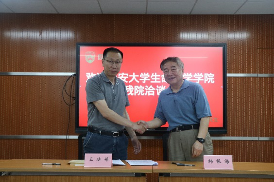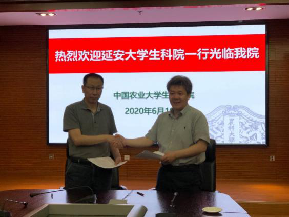 6月10上午,王延峰一行赴中国农业大学生物学院,与该院院长郭岩、党委书记孙德昊等院领导就师资队伍、科研平台建设以及合作开展人才培养等方面进行了深入交流并签署了合作协议。按照协议,双方将在“延河高校人才培养联盟”的精神下,在合作开展人才培养等方面进行深入合作。