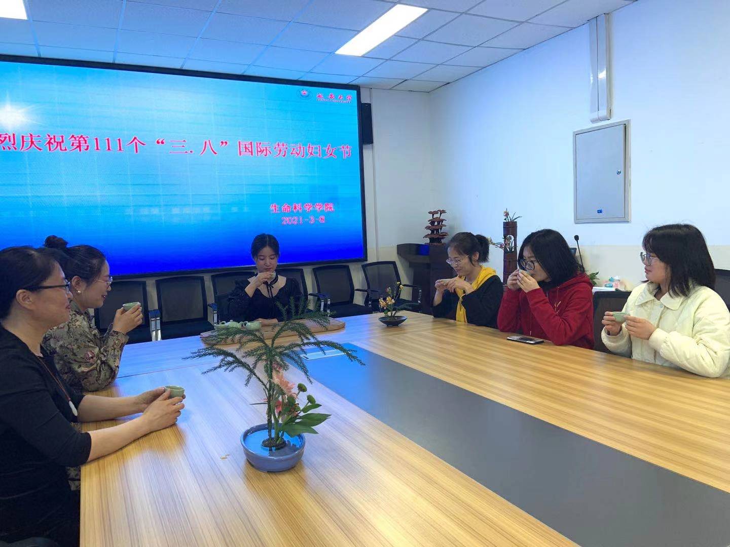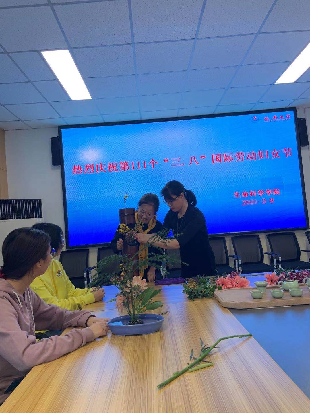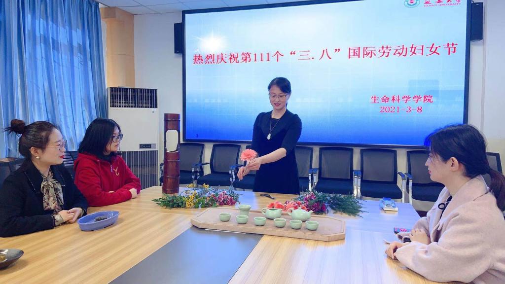 3月8日下午,生科院女教职工在学院会议室开展了庆祝“三八”妇女节活动,全体女教职工参加了活动。活动的形式包含屈亚潭老师指导的插花和刘婉如老师为大家讲述生活茶艺与健康。