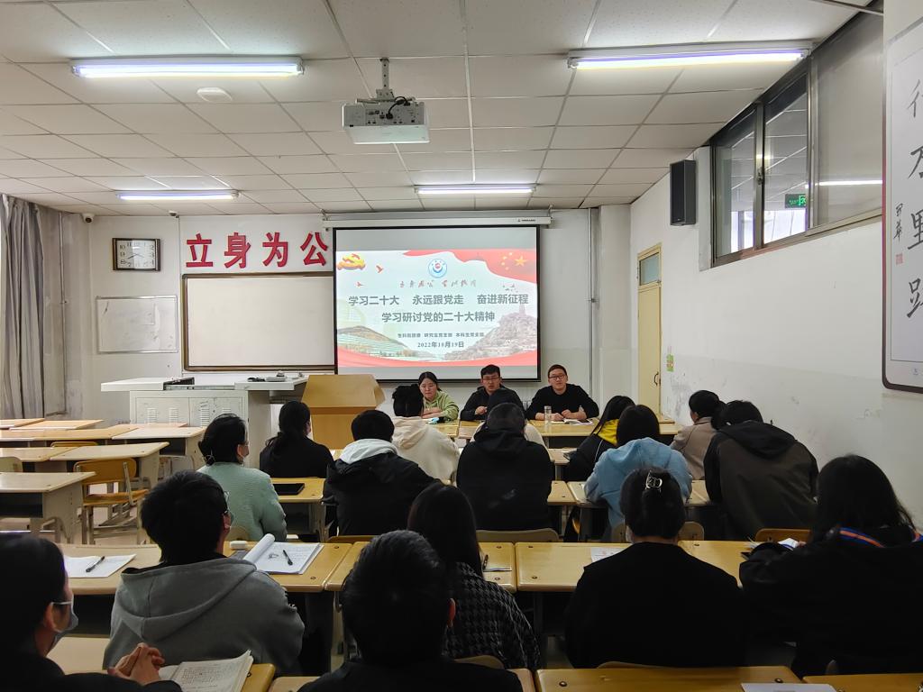10月19日下午,团委、研究生党支部和本科生党支部在2206教室召开了“学习二十大 永远跟党走 奋进新征程”学习研讨会,团委书记韩畅、研究生党支部书记张蓉,学生党员等30余人参加了会议。会议由组织员、本科生支部书记刘登强主持。