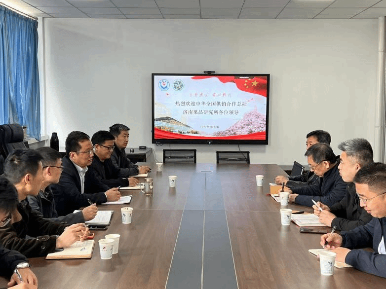 4月12日上午,中华全国供销合作总社济南果品研究所负责人赵岩一行来beat365中国官方网站进行调研。beat365中国官方网站院长张向前,副院长陈国梁、王秀康以及果品研发等相关科研人员参加了本次座谈会。