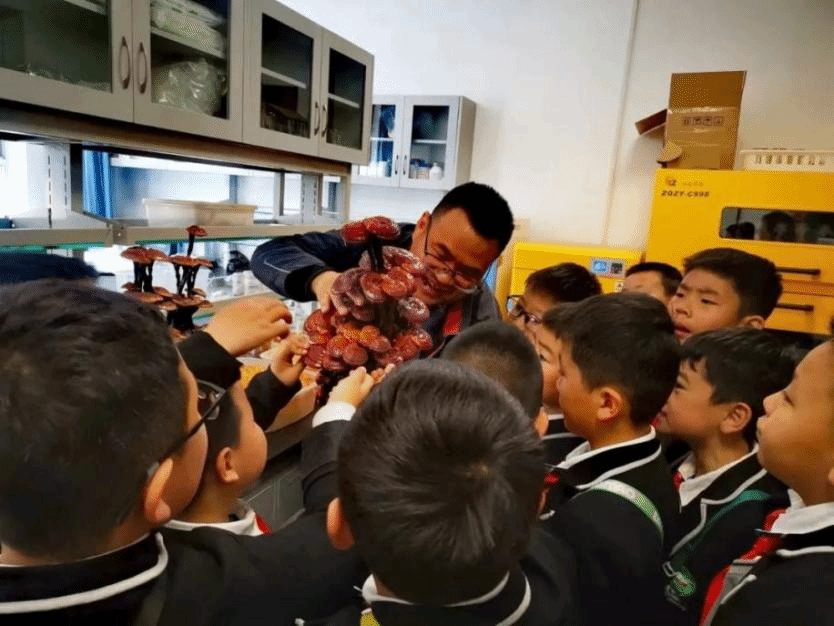 动植物标本室由延安大学野生动物保护研究团队朱梦炎博士进行了细致的讲解,为同学们生动的介绍了大熊猫、羚牛、褐马鸡等陕西生分布的国家珍稀濒危动物的形态特征与生存环境。贺晓龙高级实验师对常见菌类标本、菌类的分类、食用菌栽培、生长环境等进行了生动的介绍,并让同学们切身感受了菌类的生长过程。