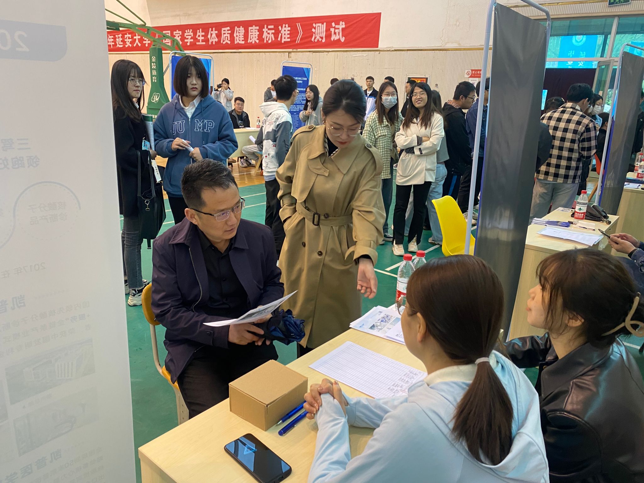 4月21日上午,由beat365中国官方网站、化学与化工学院、石油工程与环境工程学院联合承办的延安大学2023届生物化工石油类毕业生专场招聘会在杨家岭校区体育馆举行。来自浙江、内蒙古、山东、江苏、山西、陕西、天津7个省市23家用人单位报名参会,提供工作职位71个,就业岗位880余个,涉及我校石油、化工、生物、经管、医学、土木工程等专业,吸引校内外600余名毕业生参加了招聘会。