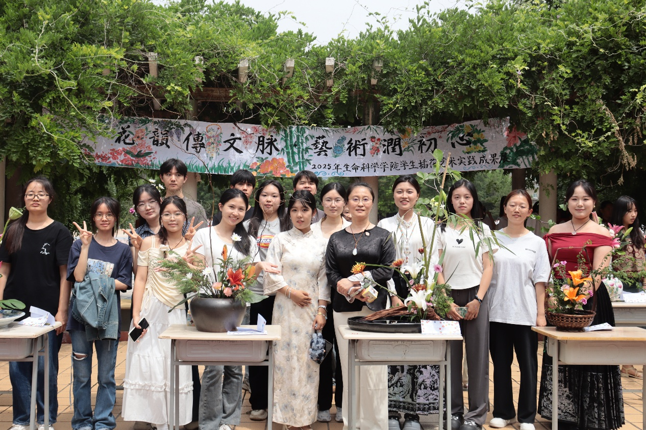 所有参会师生共同参观了插花作品,同学们对各自创作的参展作品进行了生动细致的讲解,活动现场还以点赞的方式进行了作品评比,共评选出一等奖1项、二等奖2项、三等奖3项和优秀奖5项。高媛媛在活动总结中表示未来将继续通过长期的沉浸式美育教育,培养学生对生命科学的热爱,使学生成为具备扎实专业基础、熟练动手能力和丰富人文素养的新时代青年学子。