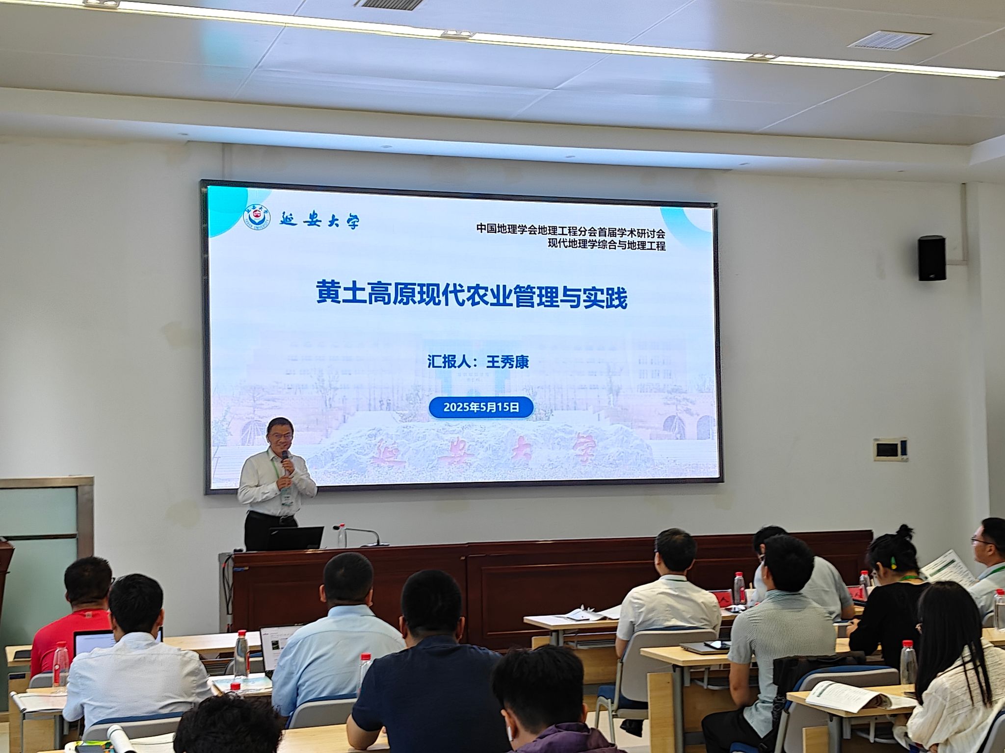王秀康教授在分会场作题为《黄土高原现代农业管理与实践》的学术报告,系统梳理了beat365中国官方网站科研团队在黄土高原农业可持续发展领域的研究成果。报告从农业结构优化、水土保持技术创新、旱作农业提质增效等维度,结合延安等地典型案例,提出了干旱半干旱地区现代农业发展的"三生协同"模式,其提出的基于数字孪生技术的农田生态系统动态监测方法。会议期间,王秀康教授还参与了“地理工程服务乡村振兴”圆桌对话,与刘彦随院士团队就生态脆弱区农业现代化路径展开交流,并实地考察了兰考县国家乡村振兴研究院的智慧农业示范基地。据悉,本次会议共设置6个专题分会场,收录学术报告120余篇,beat365中国官方网站青年教师团队提交的2篇论文均被大会论文集收录。