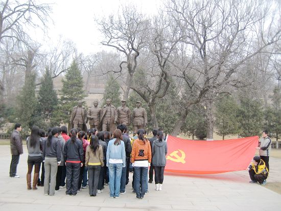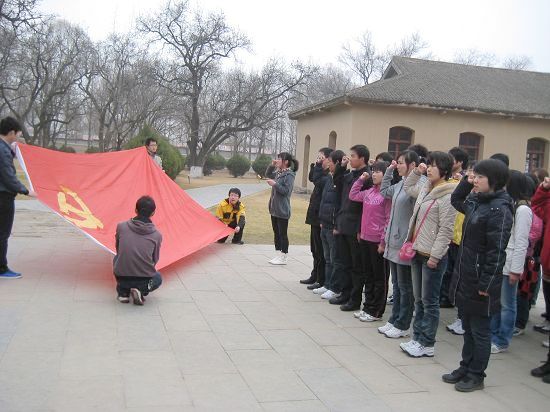 4月3日上午8:30,beat365中国官方网站在延安枣园革命旧址为2010年发展的52名新党员举行了党员宣誓仪式。学院辅导员封杰参加了宣誓仪式,第二学生党支部书记王毅主持宣誓仪式。