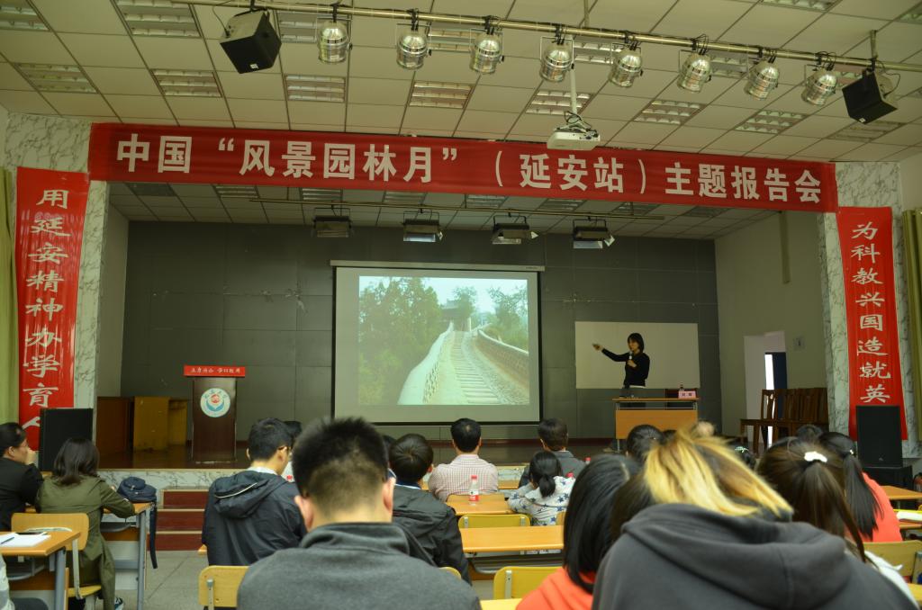 中国“风景园林月”活动是由中国风景园林学会主办,旨在宣传风景园林的社会作用和文化价值,普及风景园林专业知识的大型学术科普活动。延安站是2018年中国“风景园林月”活动第二站,这也是我校首次承办中国风景园林学会的全国性主题活动。通过报告会的举办,有效提高了我校广大师生对风景园林的认识,同时也增强了我校与中国风景园林学会和相关高校的合作关系,扩大了延安大学园林专业的社会影响力。