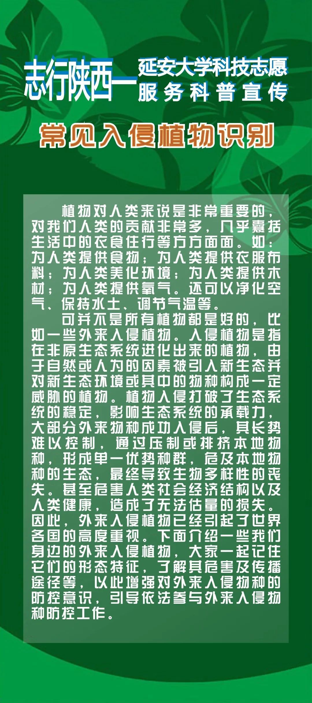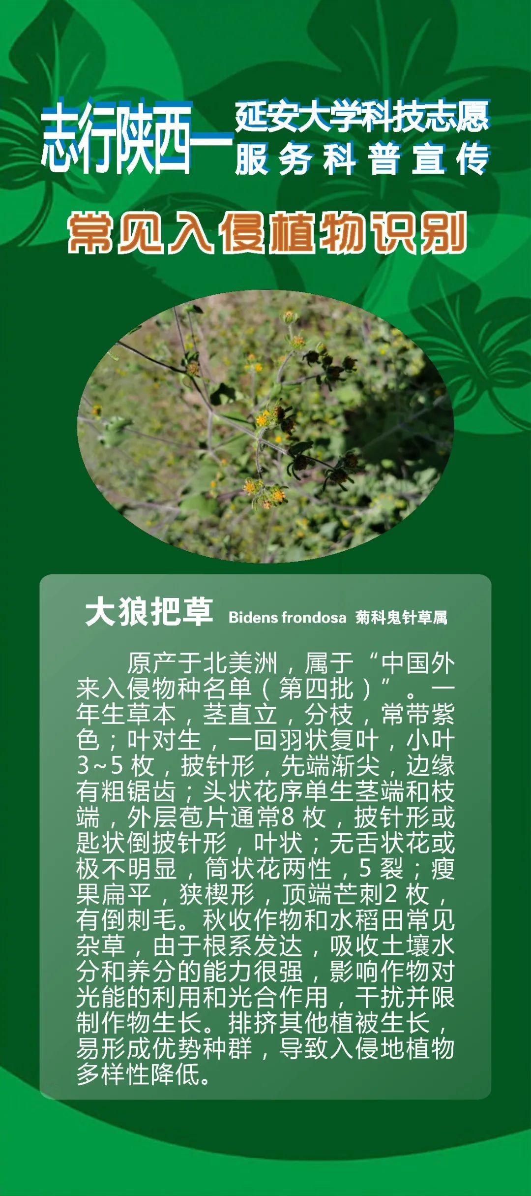 志行陕西——延安大学科技志愿服务科普宣传|常见入侵植物识别