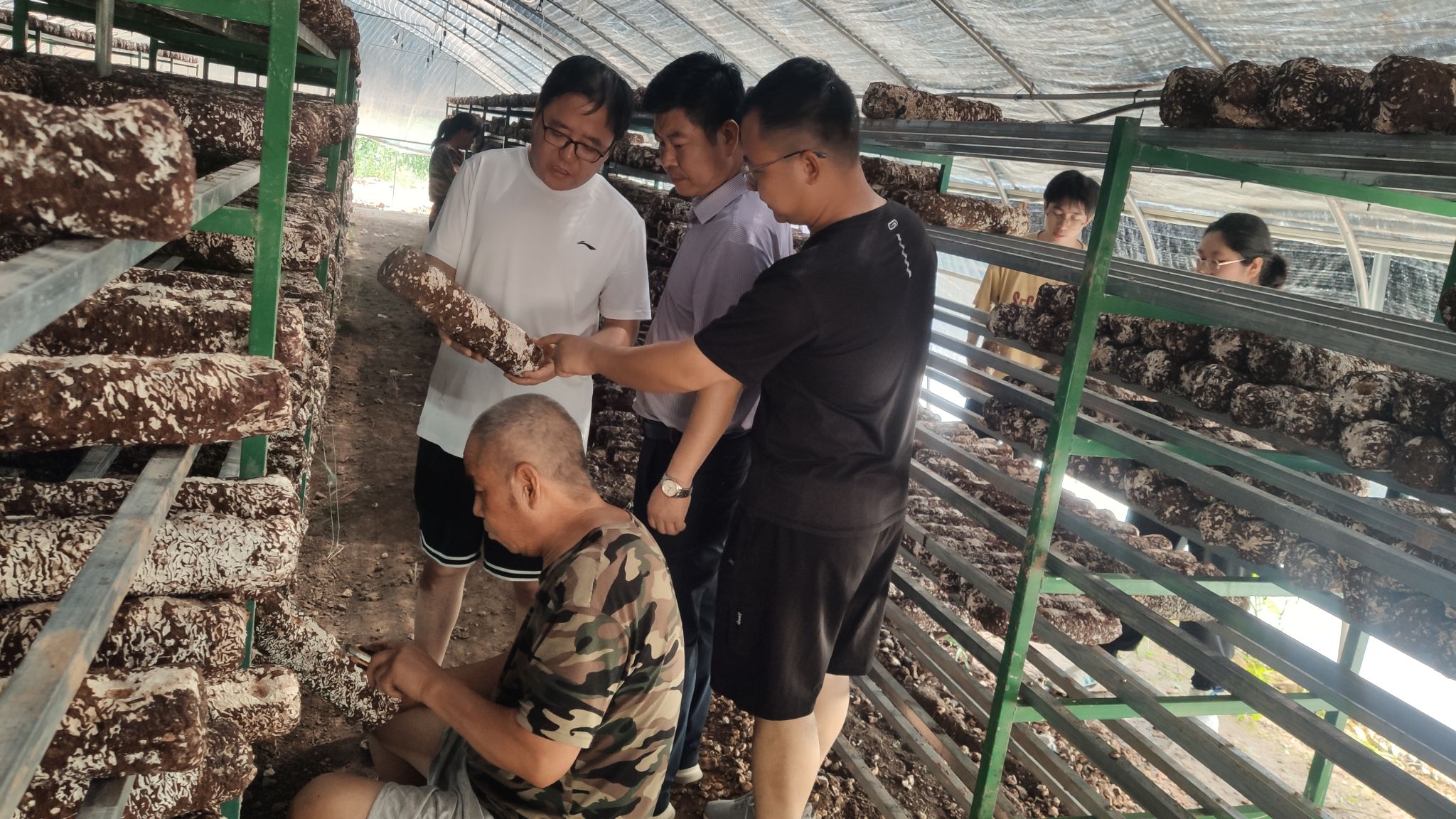 7月24日上午,beat365中国官方网站“三区”科技人才服务队刘冲、高小朋、邓健、靳鹏飞等4人前往河庄坪镇食用菌产业园区进行食用菌生产情况调研和科技服务。在延安菌舰生物科技有限公司总经理高瑜的带领下,beat365中国官方网站三区人才们详细了解了公司现阶段菌棒生产和销售情况,随后前往食用菌菌棒生产大棚,在棚里实地查看了当前菌棒生长情况,并就远距离运输过程中的菌棒存贮、香菇出菇条件控制等生产管理问题与负责人进行了沟通和技术指导。三区人才们在调研过程中还发现部分生产环节缺乏专业性工具等问题,通过现场交流和探讨,未来也会针对企业需求尝试改进和开发针对性的生产工具帮助解决实际难题。